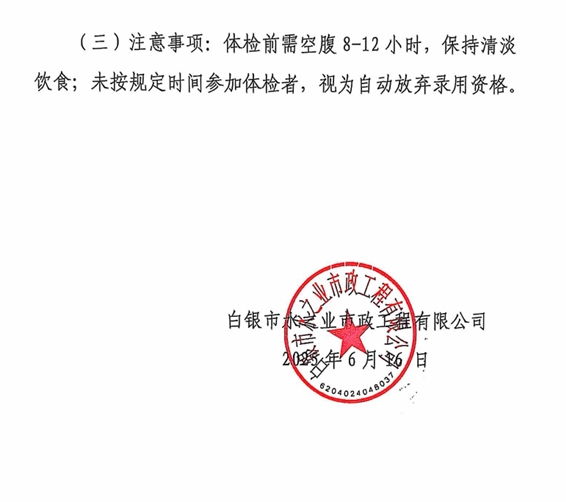 白銀市水之業(yè)市政工程有限公司關(guān)于招聘采購(gòu)員和銷(xiāo)售員考試綜合成績(jī)匯總及體檢安排的公告